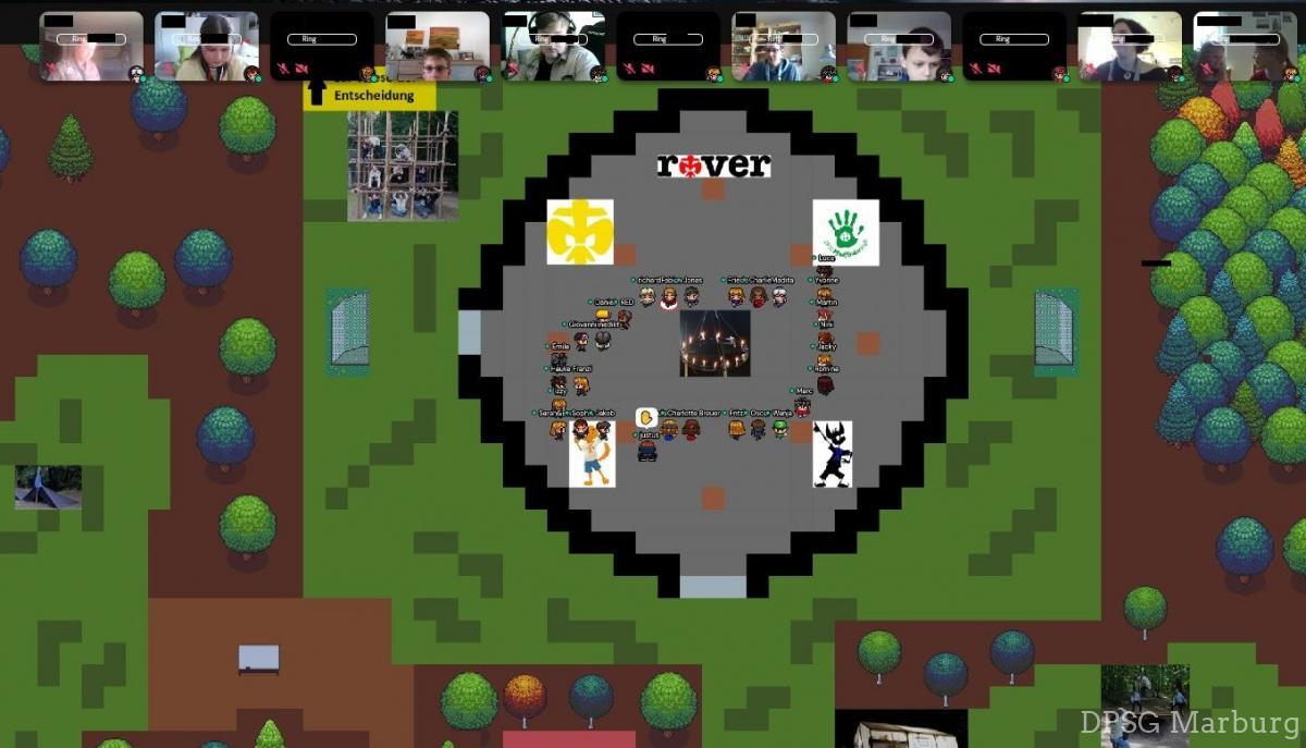 Das Freizeitgelände im Stadtwald wäre dafür eigentlich der ideale Ort gewesen, und so wurde ein fast perfektes Ebenbild des Stadtwaldgeländes auf der Online Plattform "GatherTown" detailgetreu nachgebaut. Am Sonntag, den 25. April haben sich dann schließlich 25 neugierige Kinder und Jugendliche dort in unserer großen virtuellen Jurte zusammengefunden.