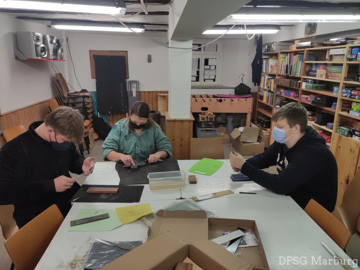 Unsere Roverrunde gestaltet wieder eigene Messer - eine eigene Klinge ausgesucht, bestellt und jetzt geht es in die Gestaltung. Die Materialen für die Griffe werden ausgesucht, montiert und dann anschließend in Form gefeilt, geschliffen und am Ende noch geölt.