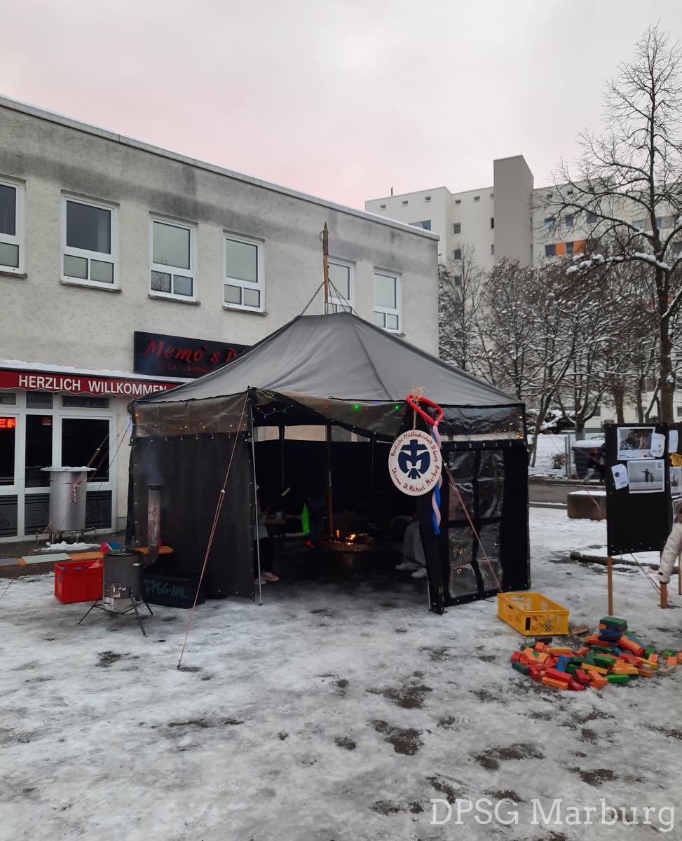 Am Samstag den 02.12. hat der alljährliche Nikolausmarkt am Richtsberg stattgefunden und die DPSG Marburg war wieder mit dabei. In unserer gemütlichen kleinen Jurte gab es bei frostigen Temperaturen und schneebdecktem Boden ein wärmendes Lagerfeuer, Stockbrot und heißen Orangensaft. Wir haben uns dabei sehr gefreut viele kleine und große, junge und alte Besucher*innen willkommen heißen zu können. Neben unserer Jurte gab es auch einige andere Angebote wie zum Beispiel Waffeln, Kuchen, Musik, Friedenslichter bemalen und das Richtsbergmobil. Wir hoffen auch im nächsten Jahr wieder dabei zu sein um die DPSG bekannter zu machen.